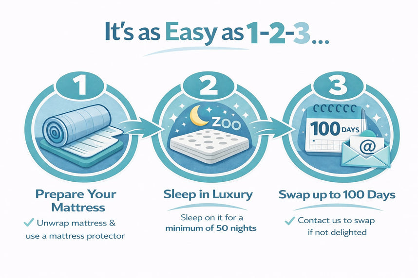 With a 100 Night sleep trial across our entire mattress range. If you're not happy with your mattress simply swap it for another within your trial period.