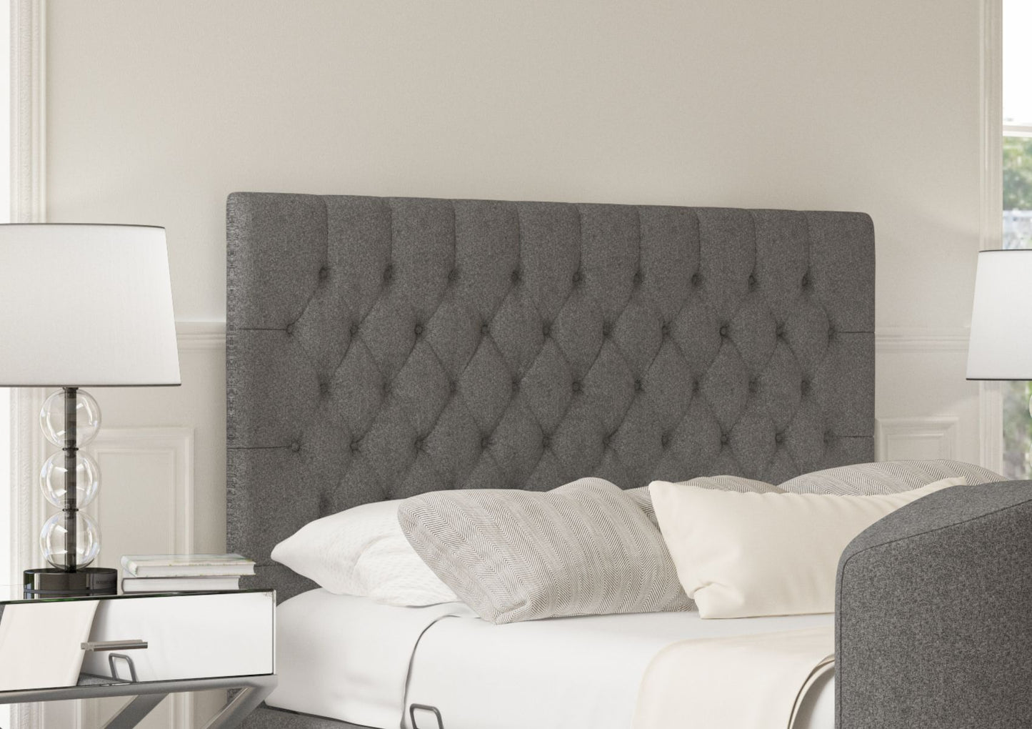 Arran Pebble - Shades of grey blend to offer a smooth woven appearance to this upholstered bed. The overall effect is a rich mid grey.