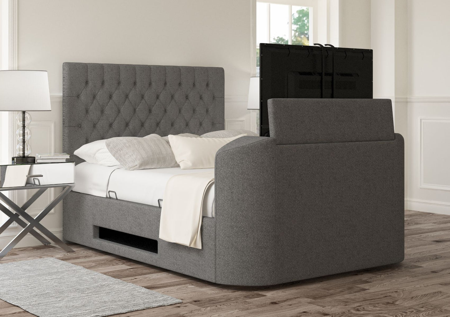 The Claridge Ottoman TV Bed is sure to be a luxurious addition to any bedroom. The grand hand tufted headboard will provide a real focal point in your room whilst working equally well in either a contemporary or more traditional design scheme. Perfect for relaxing simply kick back and relax, the TV can be effortlessly raised and lowered from the comfort of your bed with the handheld remote.