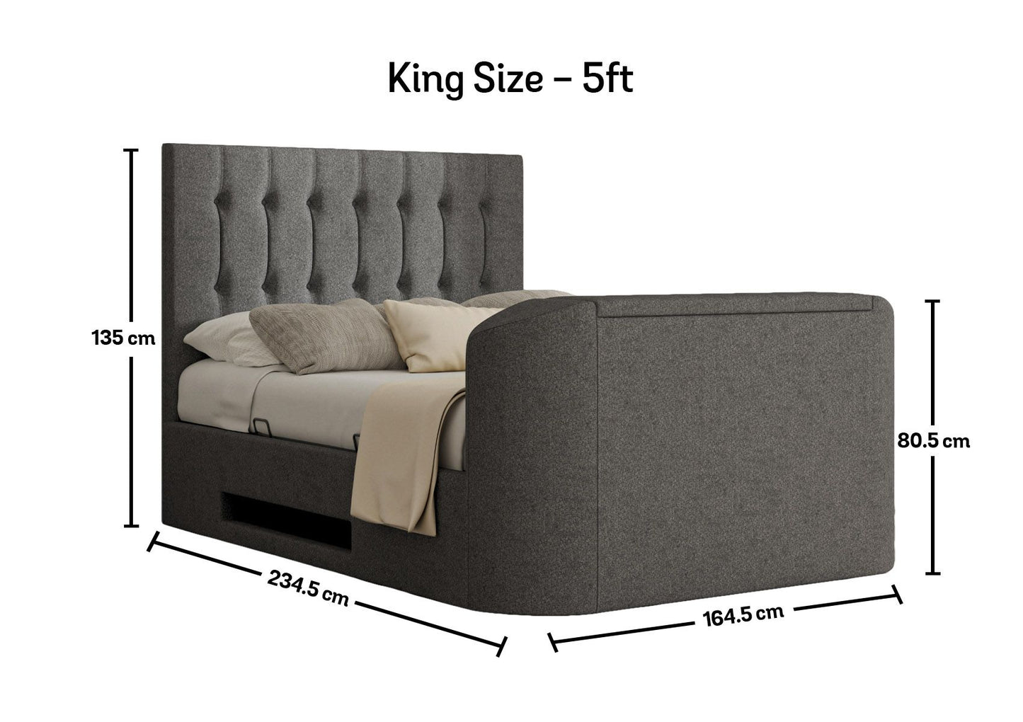 Please note mattress and TV is NOT included with any of our tv beds. As a guide this model will accommodate an LED flat screen TV up to 42". As TV varies in size, we recommend that you check the overall dimensions of the TV you intend to use prior to purchase. The maximum dimensions of the TV which can be used are as follows: Double, King or Super King: Width 97cm, Height 56cm, Depth 7cm.