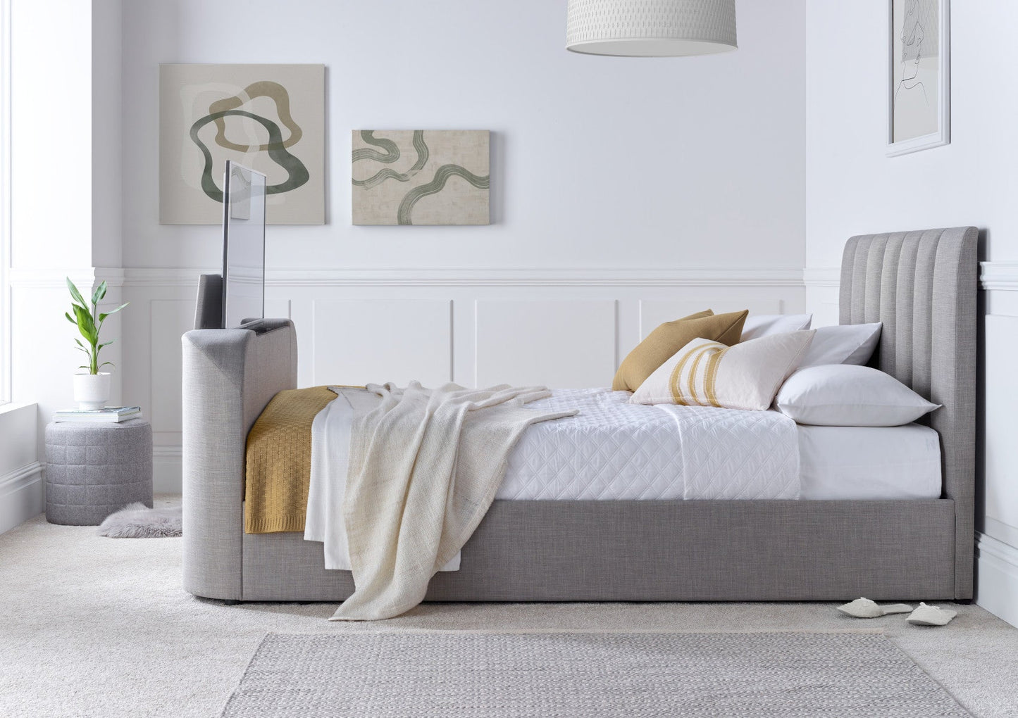 Overall, the TV bed is the perfect combination of form and function, providing both comfort and entertainment. It's the perfect addition to any bedroom, and a great investment in your comfort and relaxation. Shown here in Mid Grey the Lucille is easy to co-ordinate with other home furnishings.