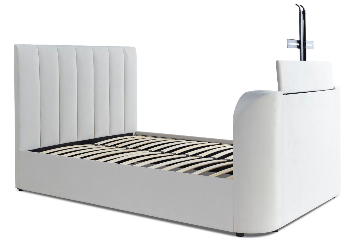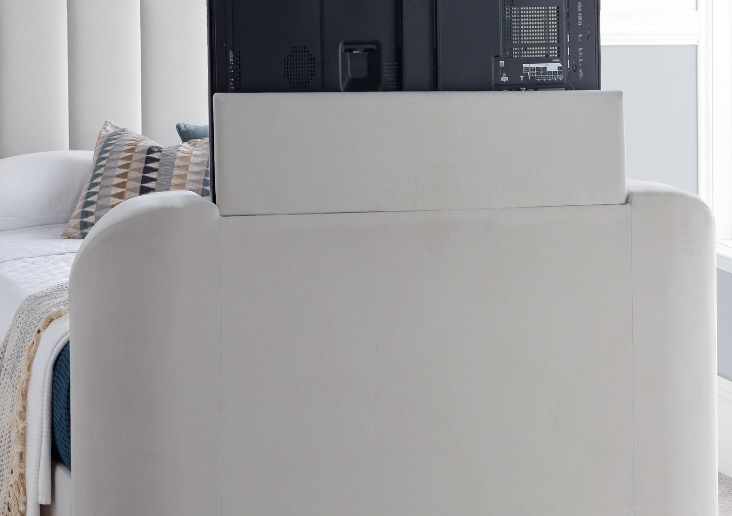 Available in a range of sizes to suit your needs, this natural velvet TV bed with remote control TV lift and sprung slatted base is a versatile piece of furniture that's perfect for any home. It's a practical and stylish choice for anyone who wants to enjoy the ultimate in comfort and convenience while watching TV in bed.