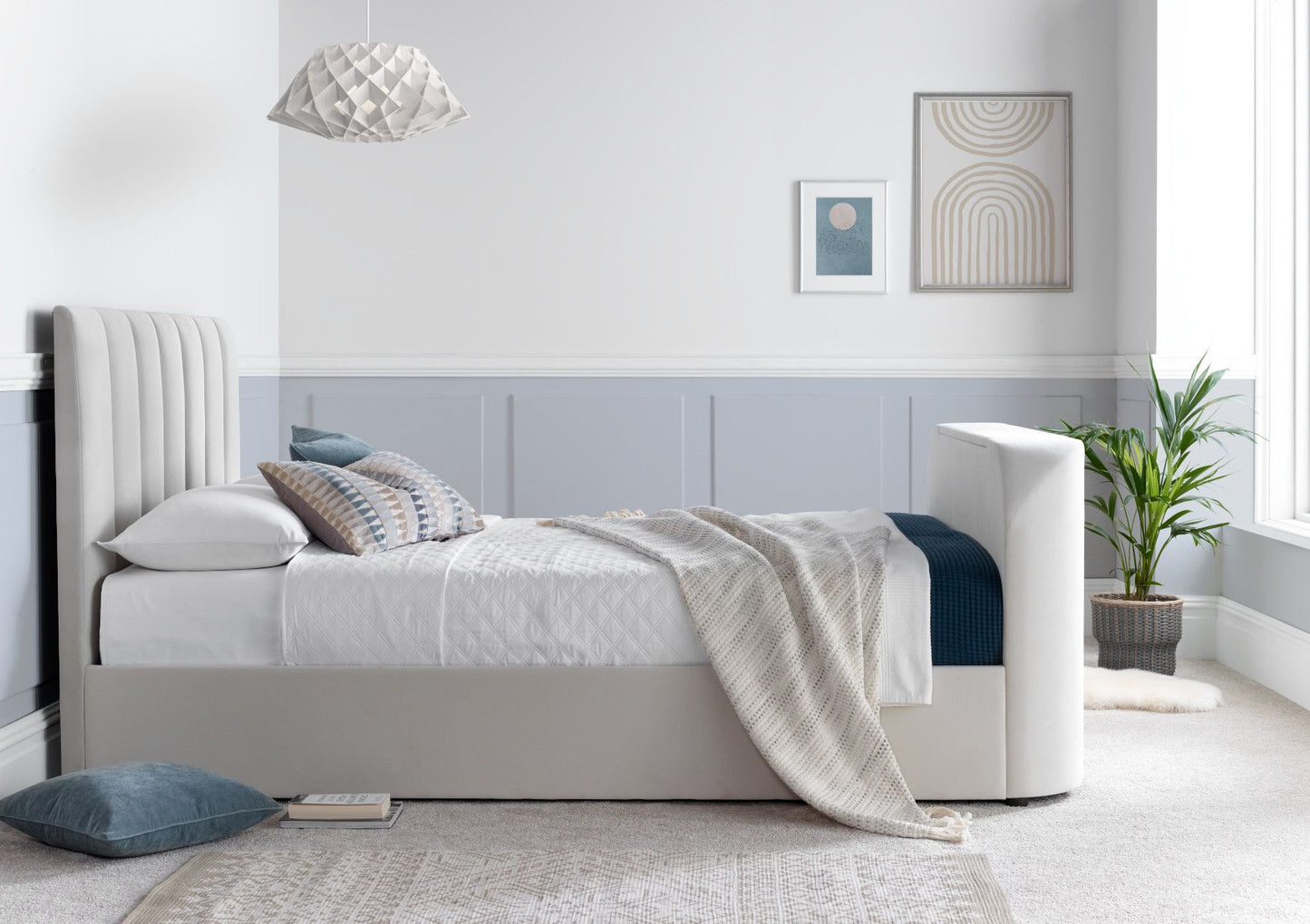 Save with our bundle offer perfectly paired with the Lucille Upholstered TV Bed Natural Velvet Bed Frame Only.