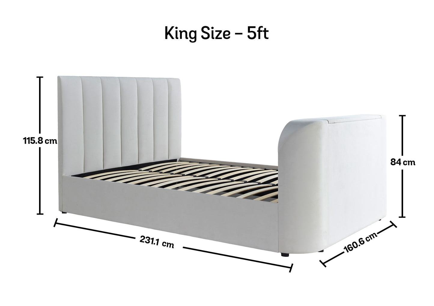 Introducing our natural velvet TV bed with remote control TV lift and sprung slatted base - the ultimate in luxury and convenience. This bed is crafted with high-quality materials and features a sumptuous natural velvet finish that adds a touch of glamour to any bedroom.