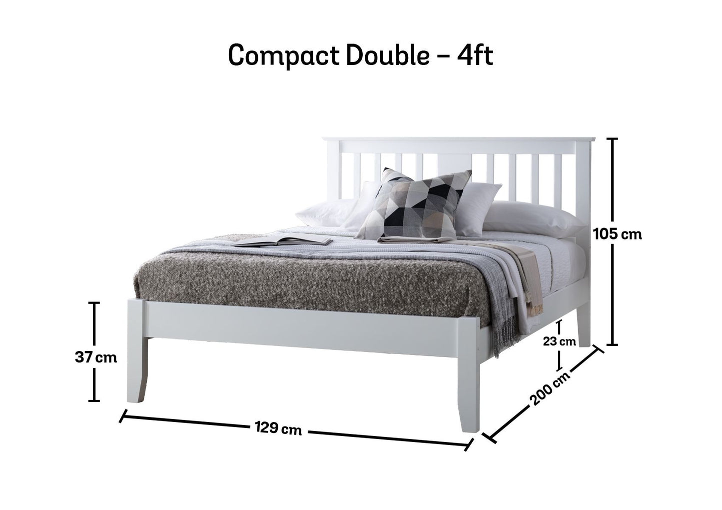 Bundle: Malmo White Wooden Bed Frame - Compact Double Bed Frame Only, Sleep Sanctuary Wordsworth Silk 2000 Pocket Sprung Mattress - Compact Double Mattress Only