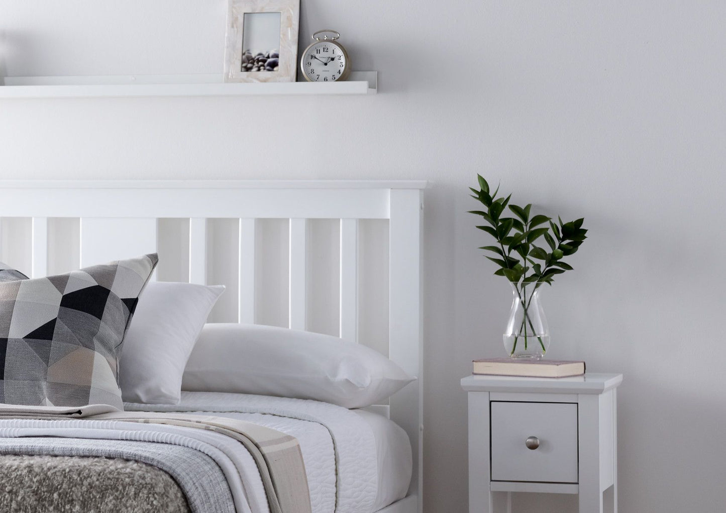 The Malmo white bed frame is constructed with a metal centre rail and 2 metal supporting feet, to give you peace of mind that you’re in safe hands when it comes to bed time. The sprung slatted base will provide extra support to your mattress during the night, ensuring you have a more comfortable and restful night’s sleep.