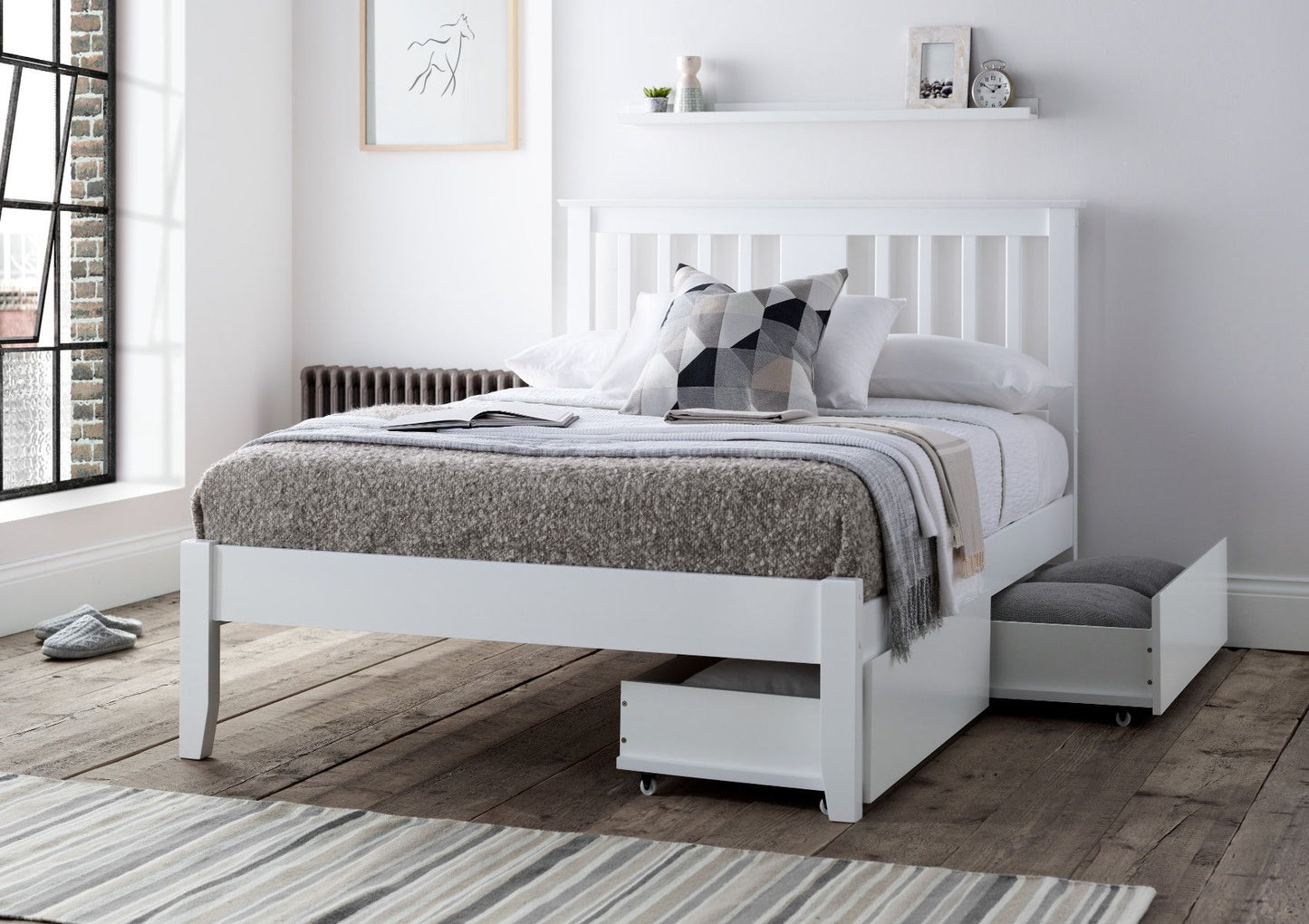 The Malmo white wooden bed frame is a simple, classic design that is beautifully elegant and will appeal to most tastes.