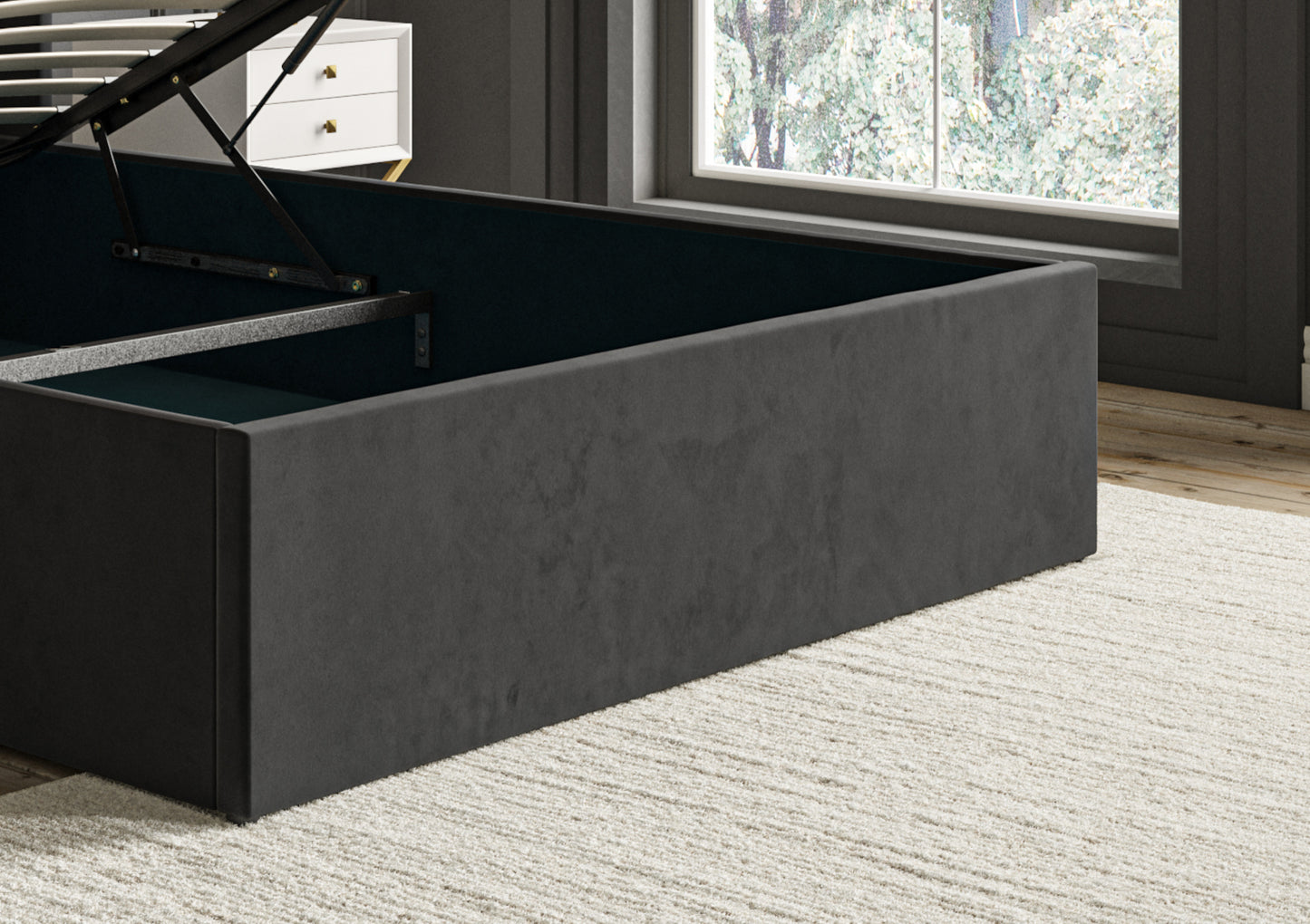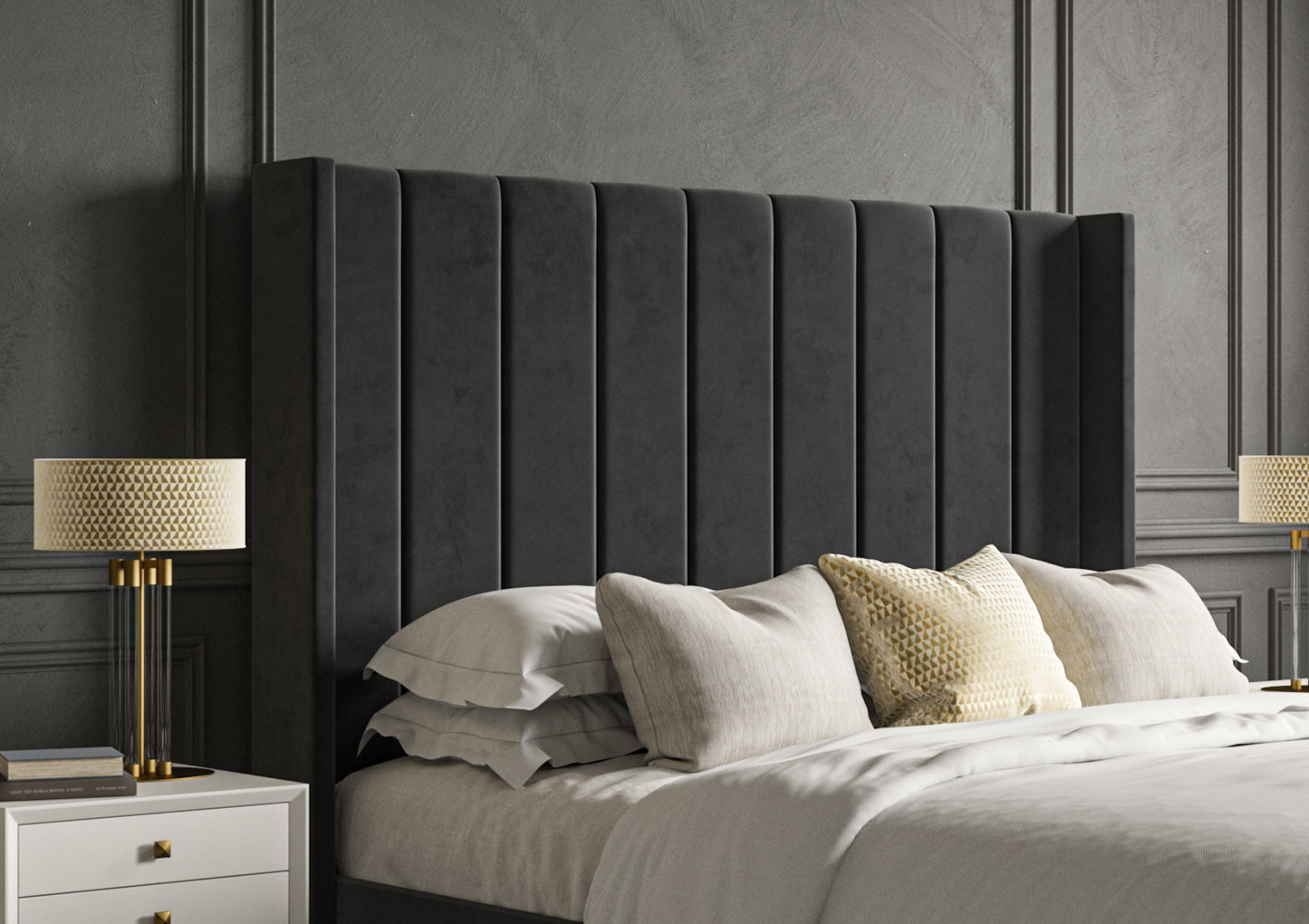 Opulence Winged Grand Hugo Charcoal Upholstered Ottoman Bed Frame Only