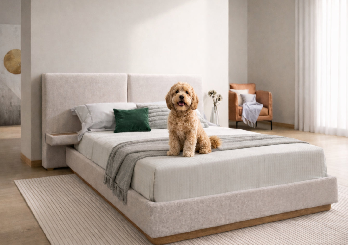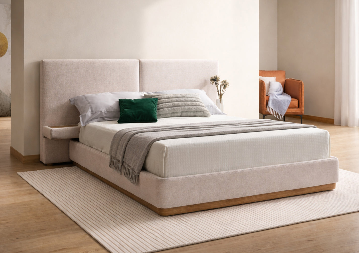 Bed and Mattress: Portofino Natural Upholstered Hotel Bed Frame - Double and Sleep Sanctuary Essentials 2000 Pocket Mattress - Double
