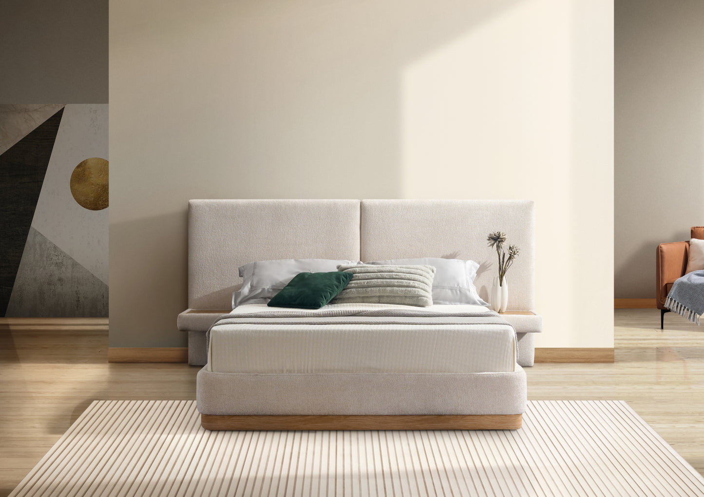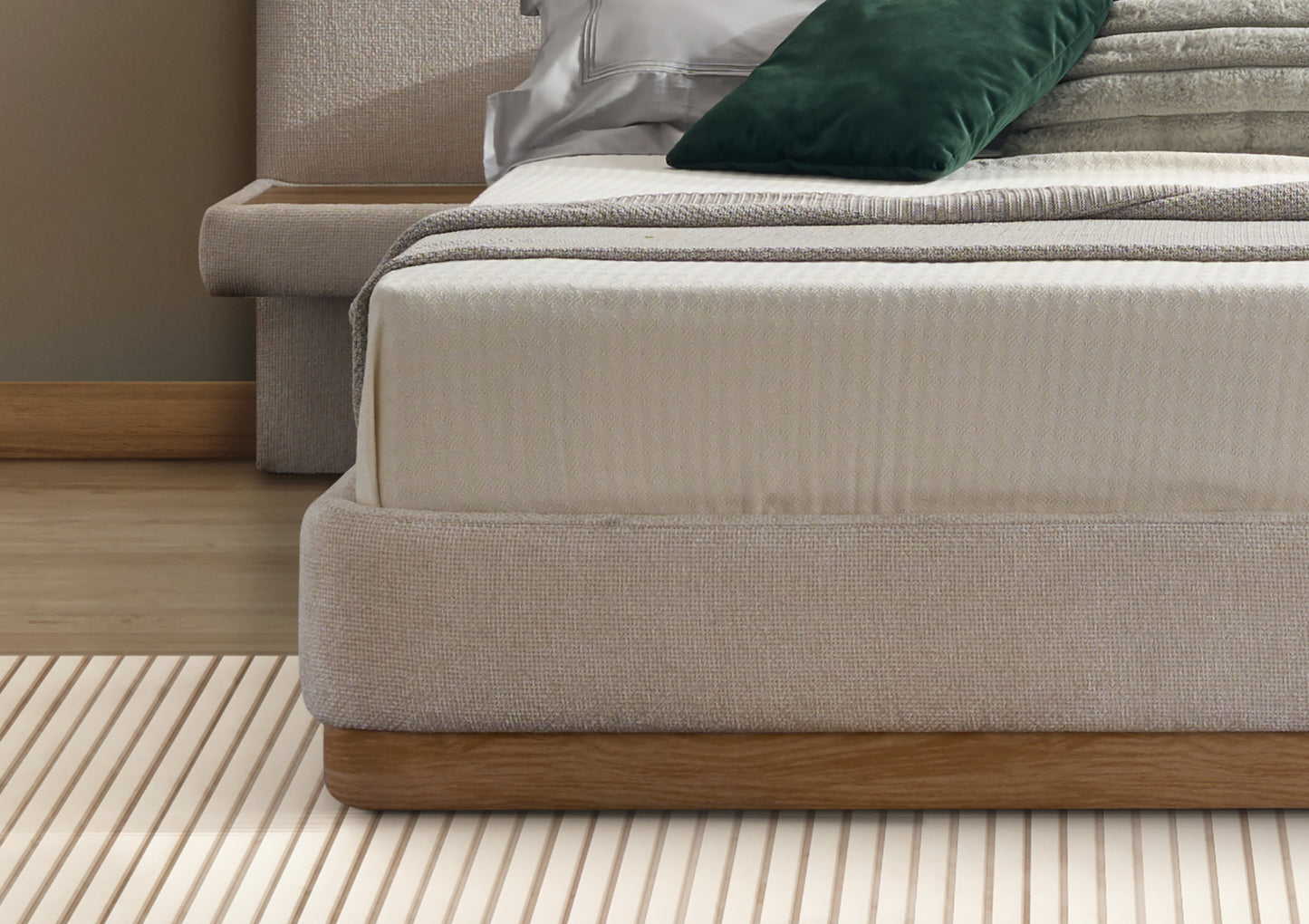 Bed and Mattress: Portofino Natural Upholstered Hotel Bed Frame - Double and Classic Deluxe Mattress - Double